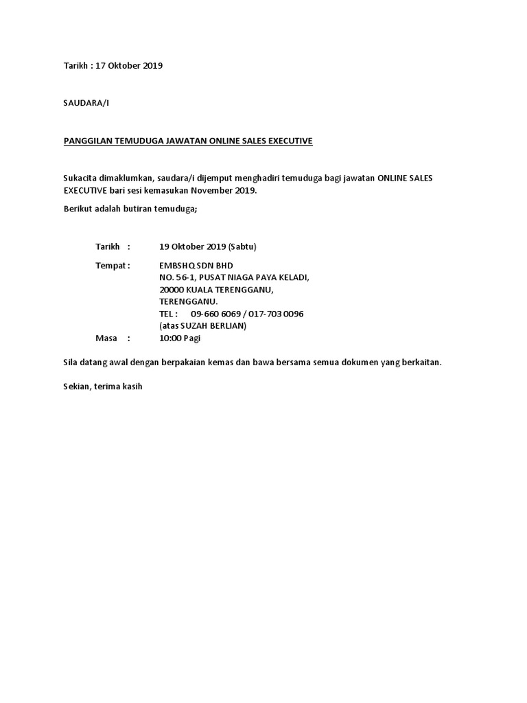 Contoh Surat Panggilan Temuduga Kerja Otosection